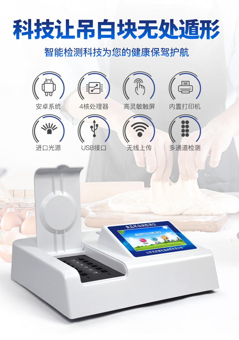 1、 檢測項目:用于快速檢測食品中吊白塊,儀器預(yù)留其他項目檢測程序和端口,根據(jù)日后需求可方便的自主增加檢測項目。日后可升級為檢測,水產(chǎn)品,肉制品,面制品的綜合類型儀器。