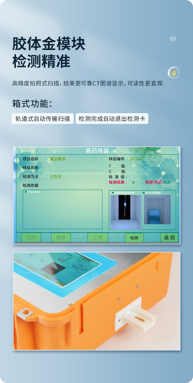 7、膠體金模塊檢測方式:軌道式自動(dòng)傳輸掃描,檢測完成后自動(dòng)退出檢測卡。