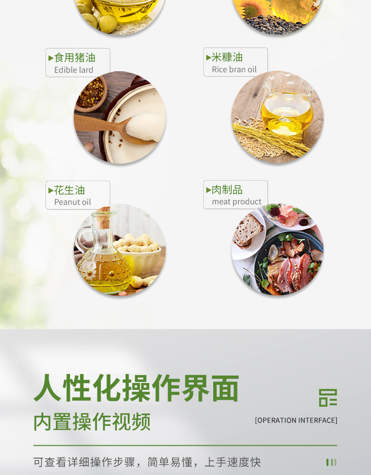 食用油過(guò)氧化值檢測(cè)儀為集成化油品快速檢測(cè)分析設(shè)備,能夠快速檢測(cè)食用植物油、食用豬油、花生油、葵花油、米糠油、食品、肉制品中的過(guò)氧化值含量;通過(guò)檢測(cè)可確定植物油是否符合國(guó)家標(biāo)準(zhǔn)或是否為劣質(zhì)油、地溝油等。儀器預(yù)留其他項(xiàng)目檢測(cè)程序和端口,根據(jù)日后需求可方便的自主增加檢測(cè)項(xiàng)目。日后可升級(jí)為檢測(cè)水產(chǎn)品、面制品的綜合類型儀器。