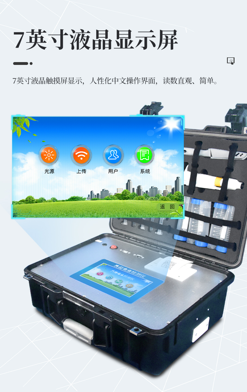 2、顯示方式:7英寸液晶觸摸屏顯示,人性化中文操作界面,讀數(shù)直觀、簡單。