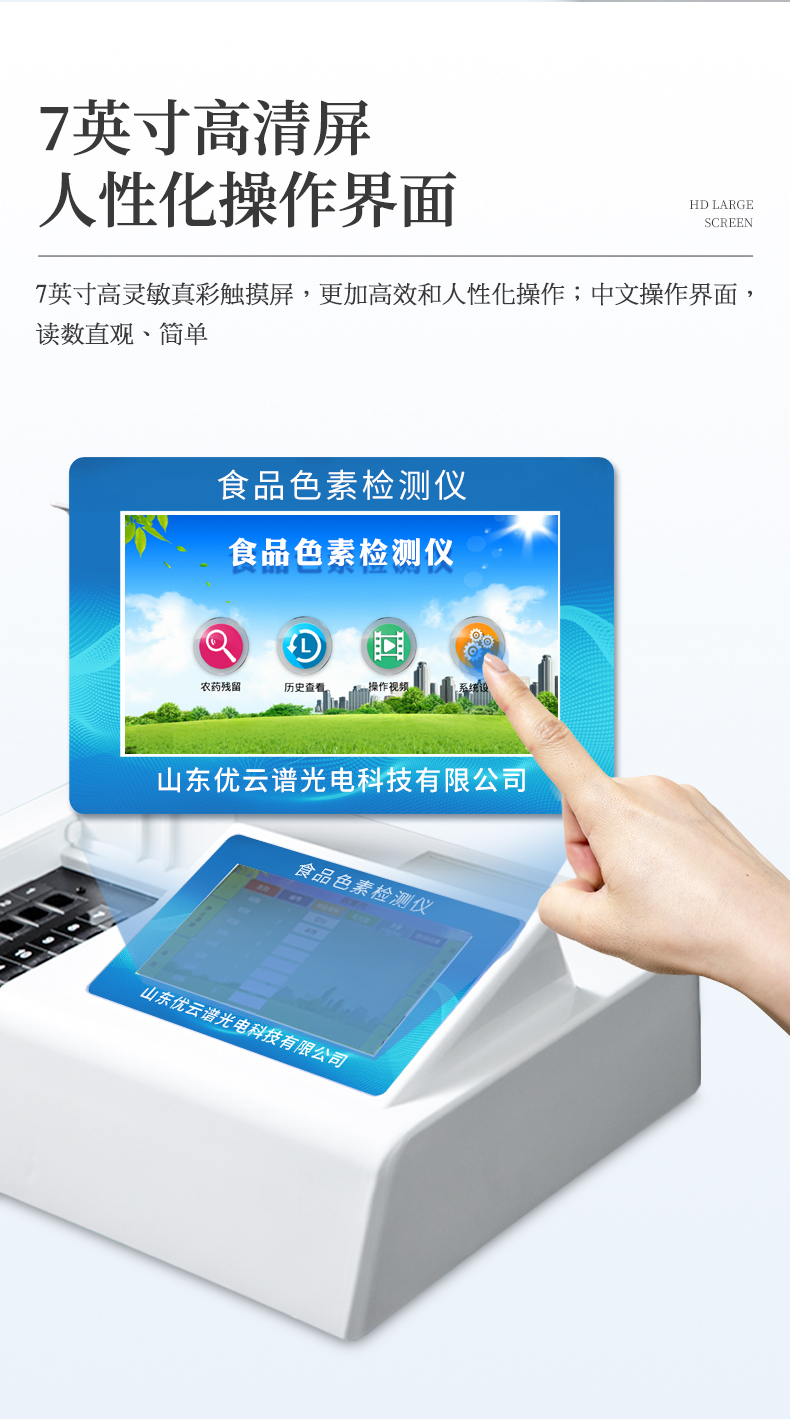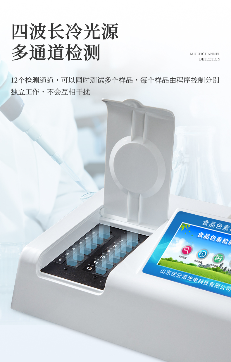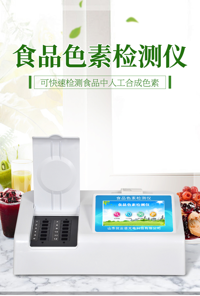 色素檢測儀可快速定量檢測食品中人工合成色素檸檬黃、日落黃、胭脂紅、莧菜紅、誘惑紅、亮藍的含量。