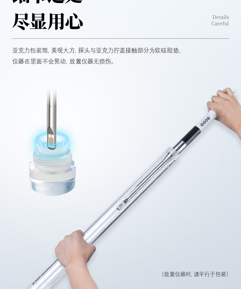 ■探頭外形采用梭形流線型設計,減少測試完成后存液掛液,同時利于擦拭清洗。