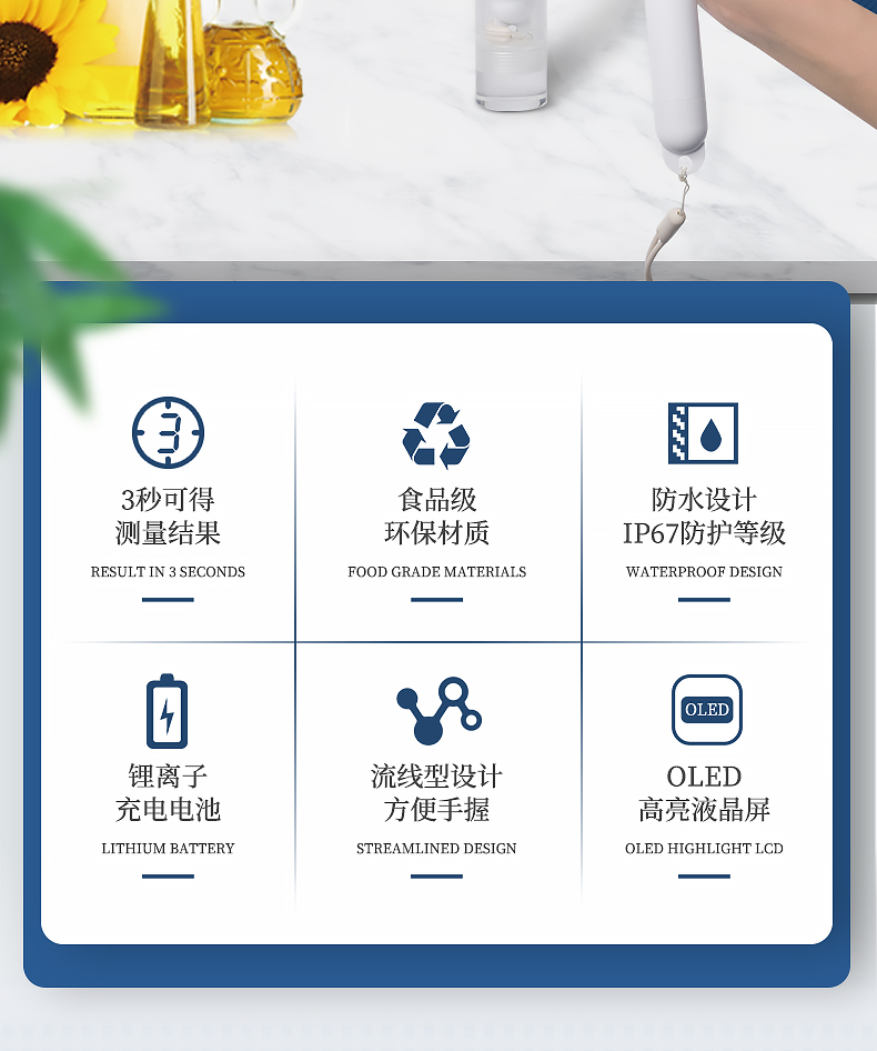 ■快速測量 3秒鐘能得到測量結果,并有不同區(qū)間品質的閃爍提示。