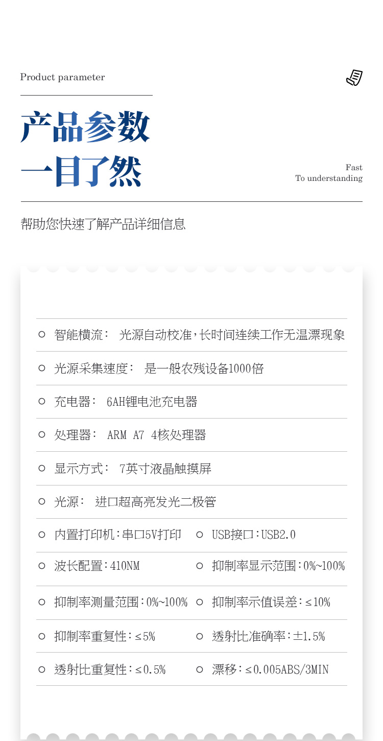 9、智能恒流穩(wěn)壓,光強(qiáng)自動(dòng)校準(zhǔn),長(zhǎng)時(shí)間連續(xù)工作光源無溫漂現(xiàn)象。